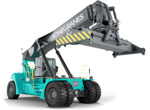 With a modified or purpose-built spreader replacing the container spreader, we hang magnets for slab handling and C-hooks or coil tongs for coil movements. When handling hot slabs, purpose-built slab tongs can withstand temperatures up to 1,100 degrees F are attached. Typical lifting capacity under the lifting device can range from 35 to 50 tons depending on attachment weight and configuration. However, there are manufacturers that are now building Reach Stackers with significantly more lifting capacity. As capacity goes up, maneuverability due to increased wheelbase goes down.