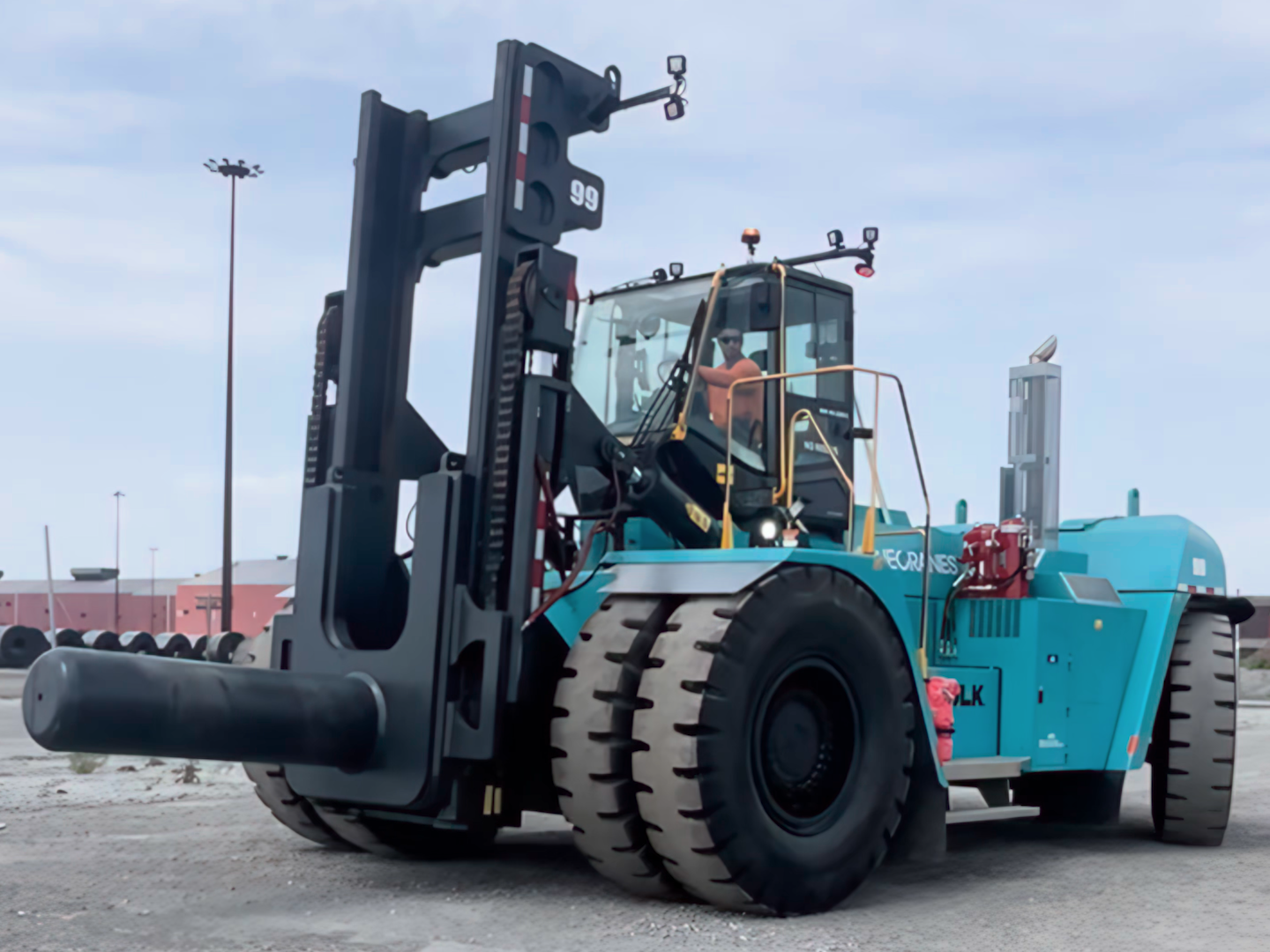 Konecranes empty container handlers can lift up to 8 containers high due to their powerful engine and wide mast.